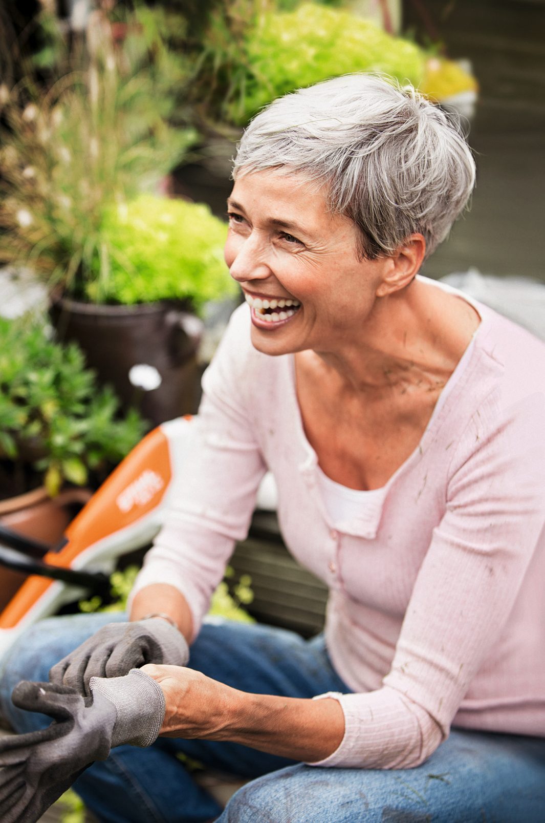 Kompakte Akku-Motorsense für Trimm- und Ausputzarbeiten runnd ums Haus